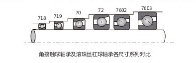 對角接觸球軸承,如果軸承安裝部位的徑向空間受到限制,或者主軸的轉(zhuǎn)速要求較高,優(yōu)先選用(1)0或19尺寸系列,甚至18尺寸系列;若主軸承受載荷較大,轉(zhuǎn)速又不太高,而且軸承安裝部位空間不受限制,則可選用(0)2尺寸系列軸承。